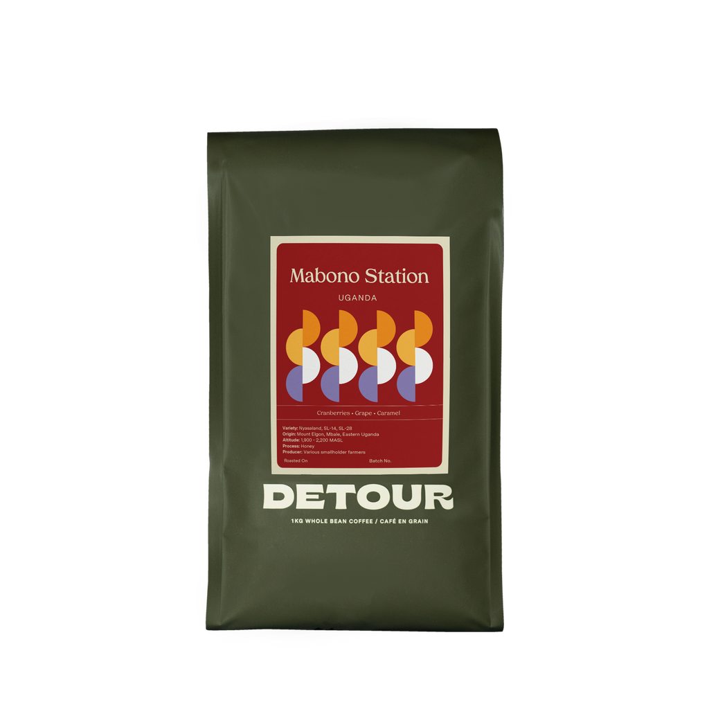 Nestled between the hills of Mount Elgon—Mabono, Namesti, Itimbwa, and Bukalasi—Mountain Harvest has established a micro-washing station where Uthman buys cherries and processes them with a team of Processing Assistants. For this particular coffee, Uthman prepared a Honey process in its purest form: red ripe cherries were floated, pulped, and placed on raised beds for drying until they reached 11% moisture content, then rested in a temperature-controlled warehouse.