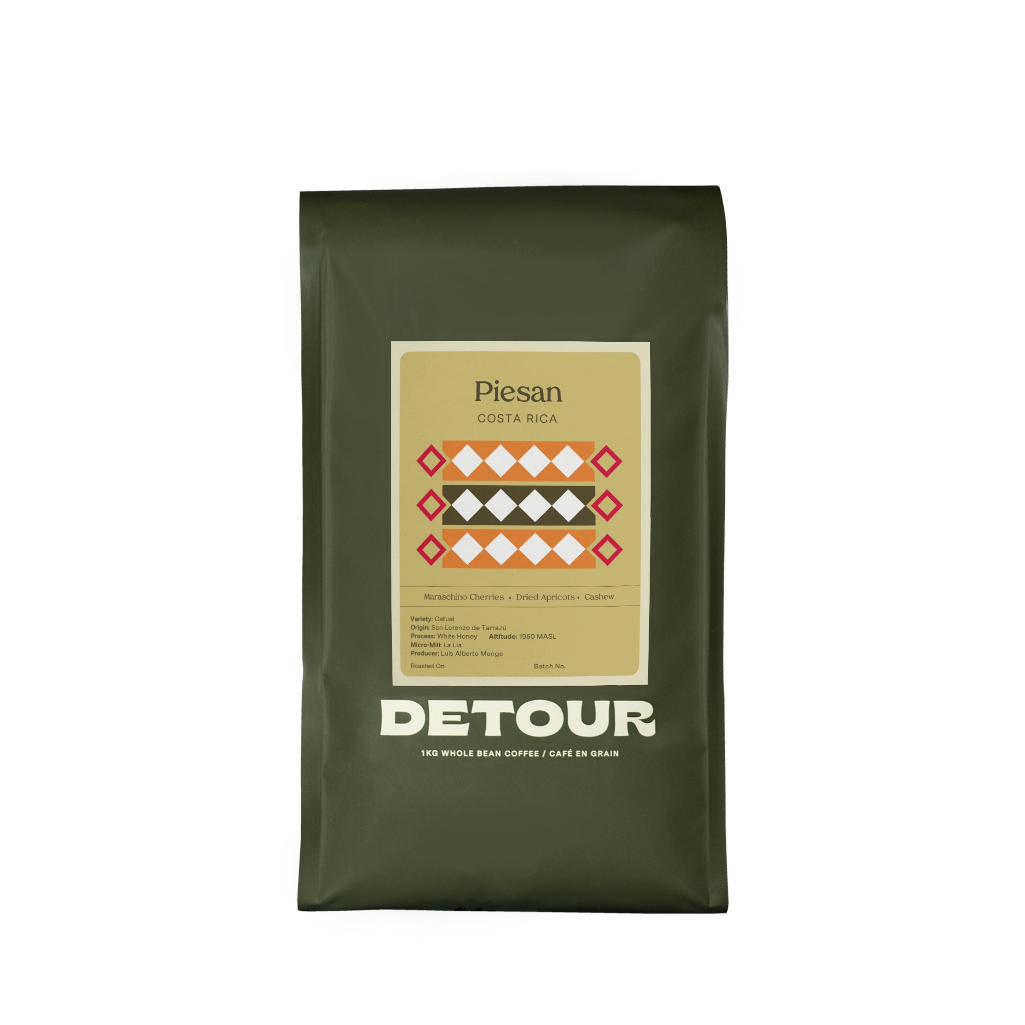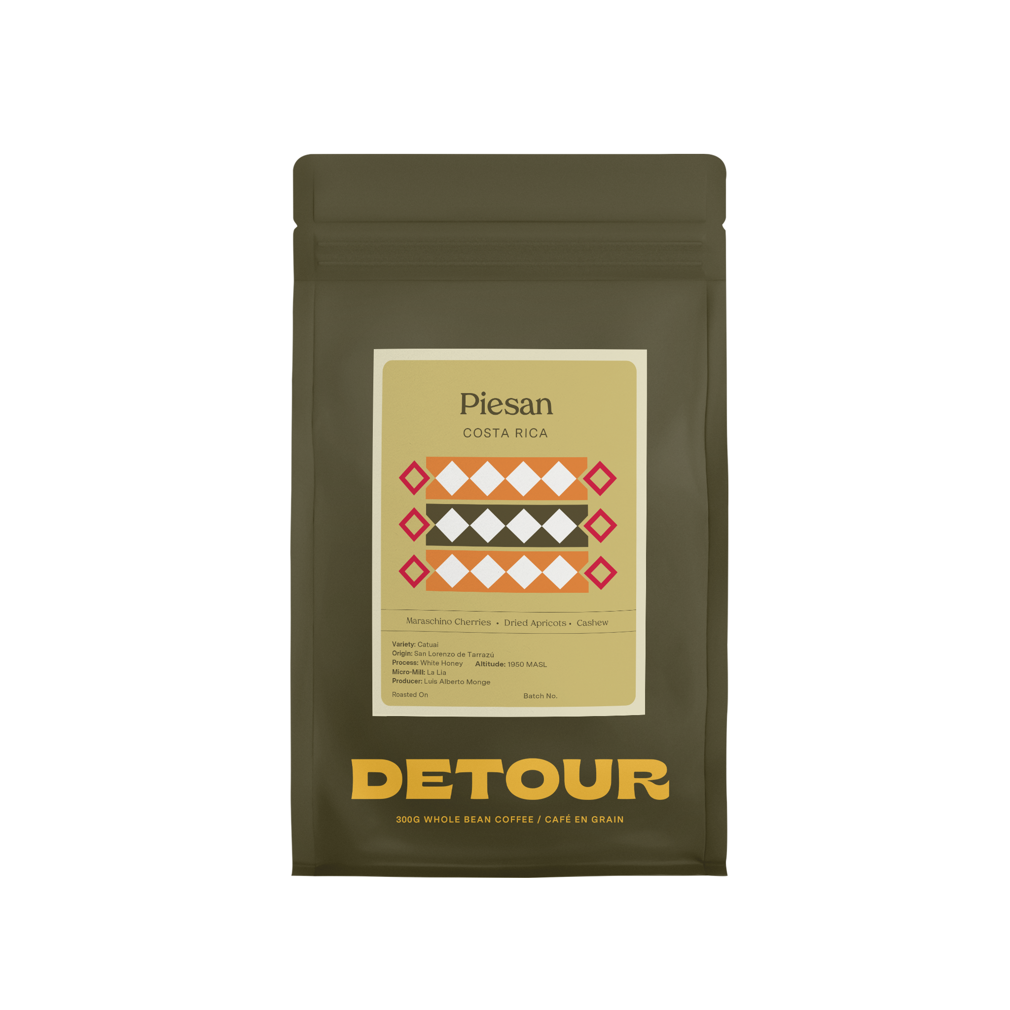 Luis Alberto Monge is a renowned producer who has won the Cup of Excellence and owns the La Lia micro mill, named after his grandmother. Monge's mill began operations in 2007, and his family has produced coffee since his grandmother's time. They prioritize high-quality coffee by focusing on the coffee trees and their soil, starting with proper fertilization. Utilizing technology and information, Monge can accurately determine the right amount of calcium to enhance the quality of his coffee cherries. Additionally, increasing potassium levels produces harder beans and improves flavour and overall development. This Red-Honey Processed Cataui is grown on Luis’s highest elevation farm, Piesan, and is processed at his family-owned micro-mill, La Lia. As with most coffees from the region, after picking, this lot has undergone the honey process, in which the coffee is allowed to ferment on a portion of its pulped fruit mucilage before being washed and dried.